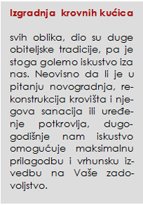 Odabir vrste drveta od koje se izrađuje krovna konstrukcija prepuštamo Vama.